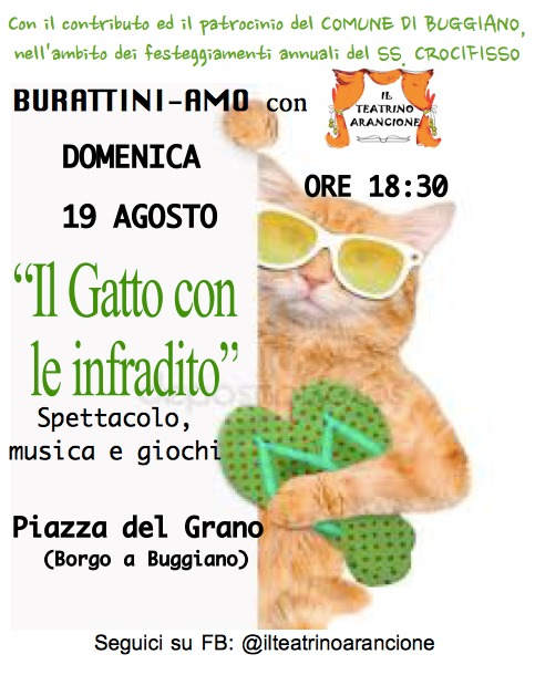 Domenica 19 AGOSTO ore 18.30 spettacolo Burattini...amo con il Teatrino Arancione in Piazza del Grano
