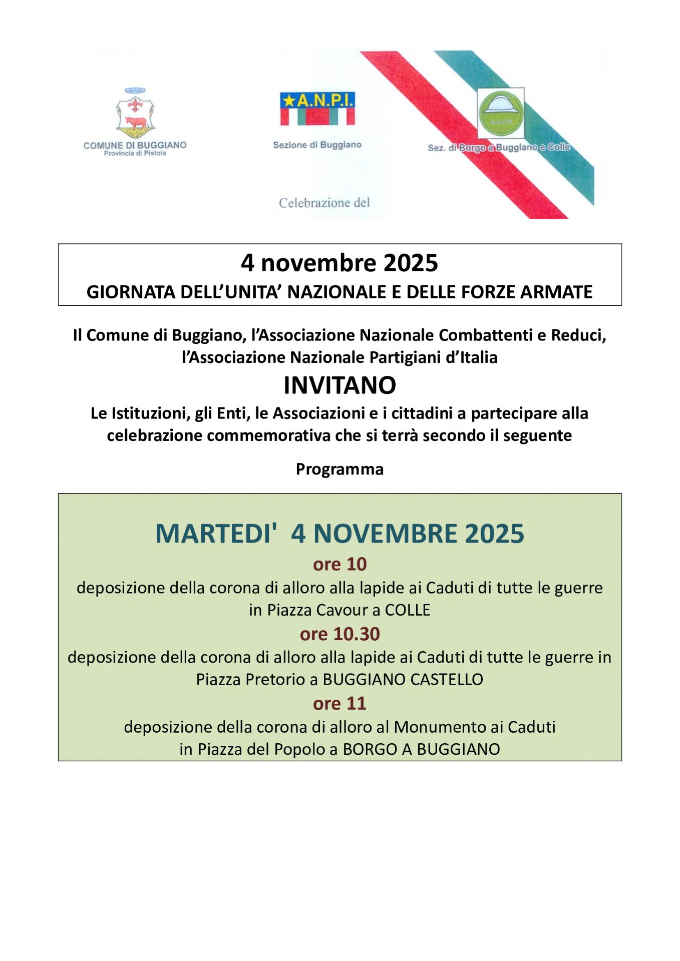 ll Comune di Buggiano, l’Associazione Nazionale Combattenti e Reduci,