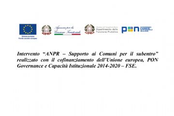 SOSTEGNO DEI FONDI EUROPEI PER IL SUBENTRO ALL'ANAGRAFE NAZIONALE DELLA POPOLAZIONE RESIDENTE