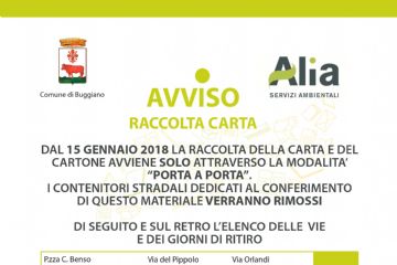 DAL 15 GENNAIO 2018 LA RACCOLTA DELLA CARTA E DEL