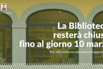 La biblioteca comunale resterà chiusa in via cautelativa fino al 10 marzo 2021 compreso. Per info: biblioteca@comunale.buggiano.pt...