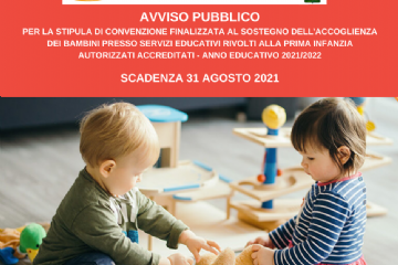 AVVISO PUBBLICO PER L’ACQUISIZIONE DI MANIFESTAZIONE DI INTERESSE PER LA STIPULA DI CONVENZIONE FINALIZZATA AL SOSTEGNO DELL'ACCOGLIENZA DEI BAMBINI PRESSO SERVIZI EDUCATIVI RIVOLTI ALLA PRIMA...