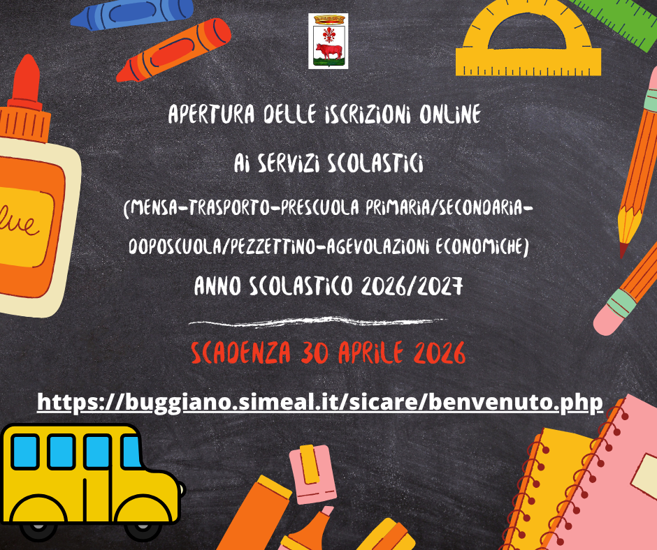 Si informa che per usufruire dei servizi scolastici (mensa-trasporto-prescuola primaria/secondaria-doposcuola/pezzettino-agevolazioni economiche) per l'a.s. 2026/2027, è necessario obbligatoriamente provvedere all'iscrizione, accedendo sulla piattaforma web dei servizi scolastici al seguente link: