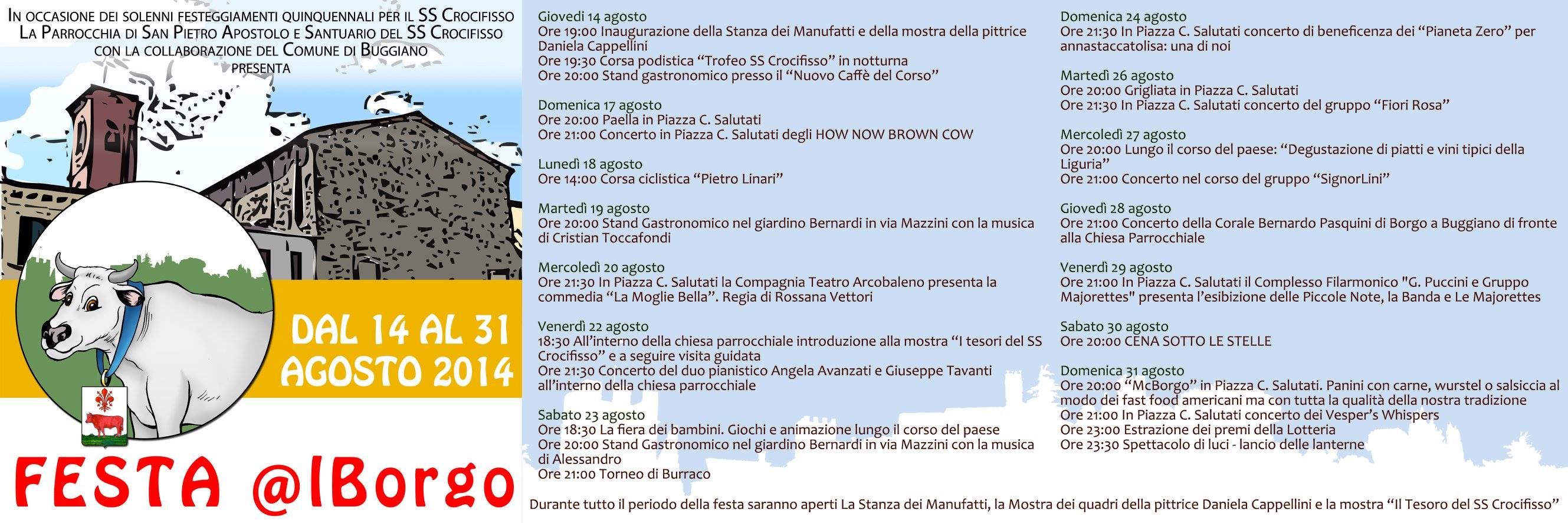 In occasione dei solenni Festeggiamenti Quinquennali per il SS. Crocifisso, la parrocchia di S. Pietro Apostolo in collaborazione con il Comune di Buggiano organizzano una ricca serie di eventi. E' possibile scaricare il programma dal link sottostante.